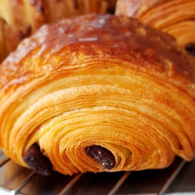Croissants et pains au chocolat, brioche au sucre , macarons, tarte chocolat, et chouquettes